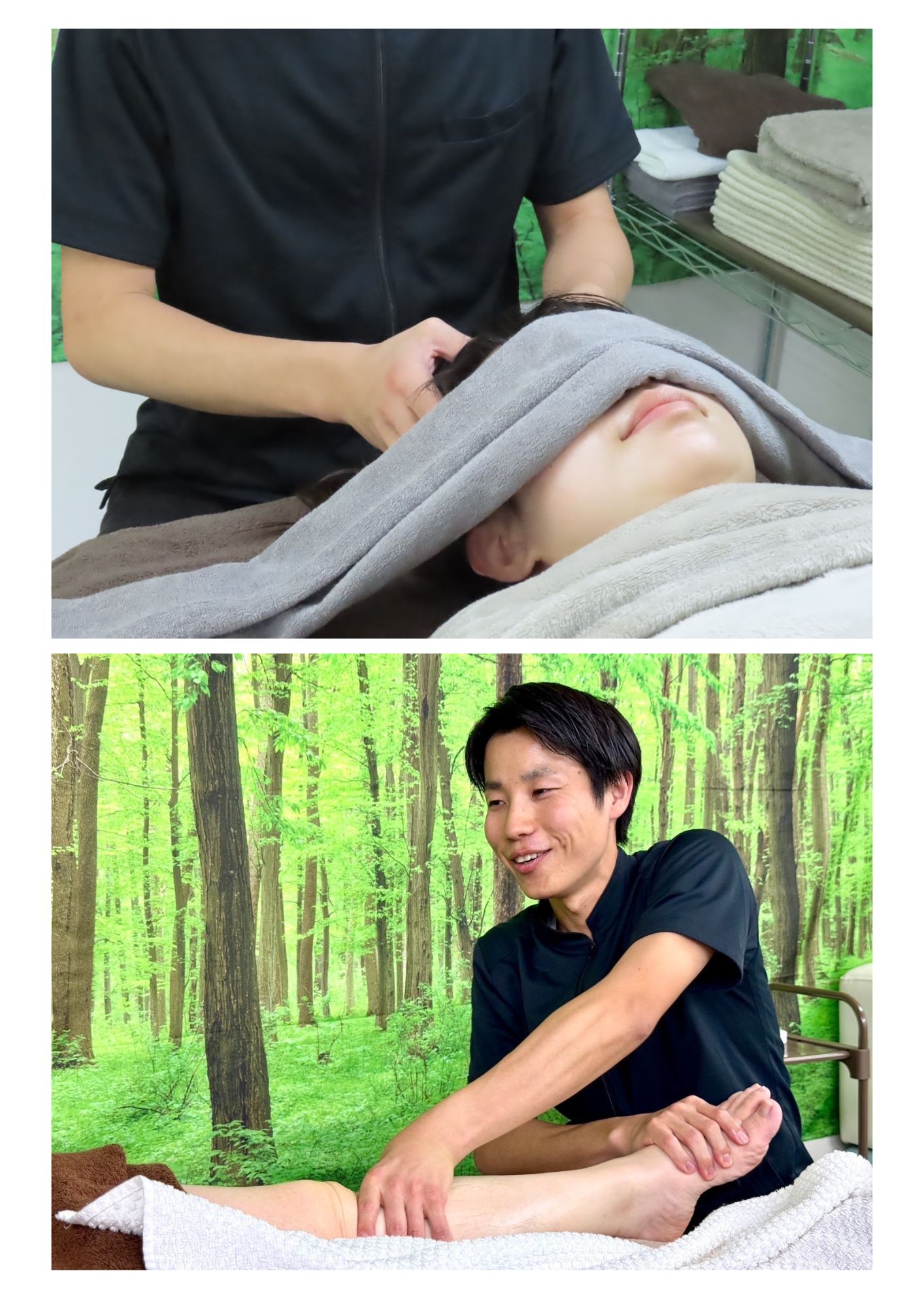 足つぼ、全身揉みほぐし、ヘッドスパ、ストレッチ、酸素ルーム組み合わせ自由。全身に効かせる至福のフルコース。だるさや全身疲労、睡眠の質にお悩みの方におすすめ